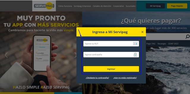- Luego a la opción «Mi Servipag» e introduce su identificación y contraseña.